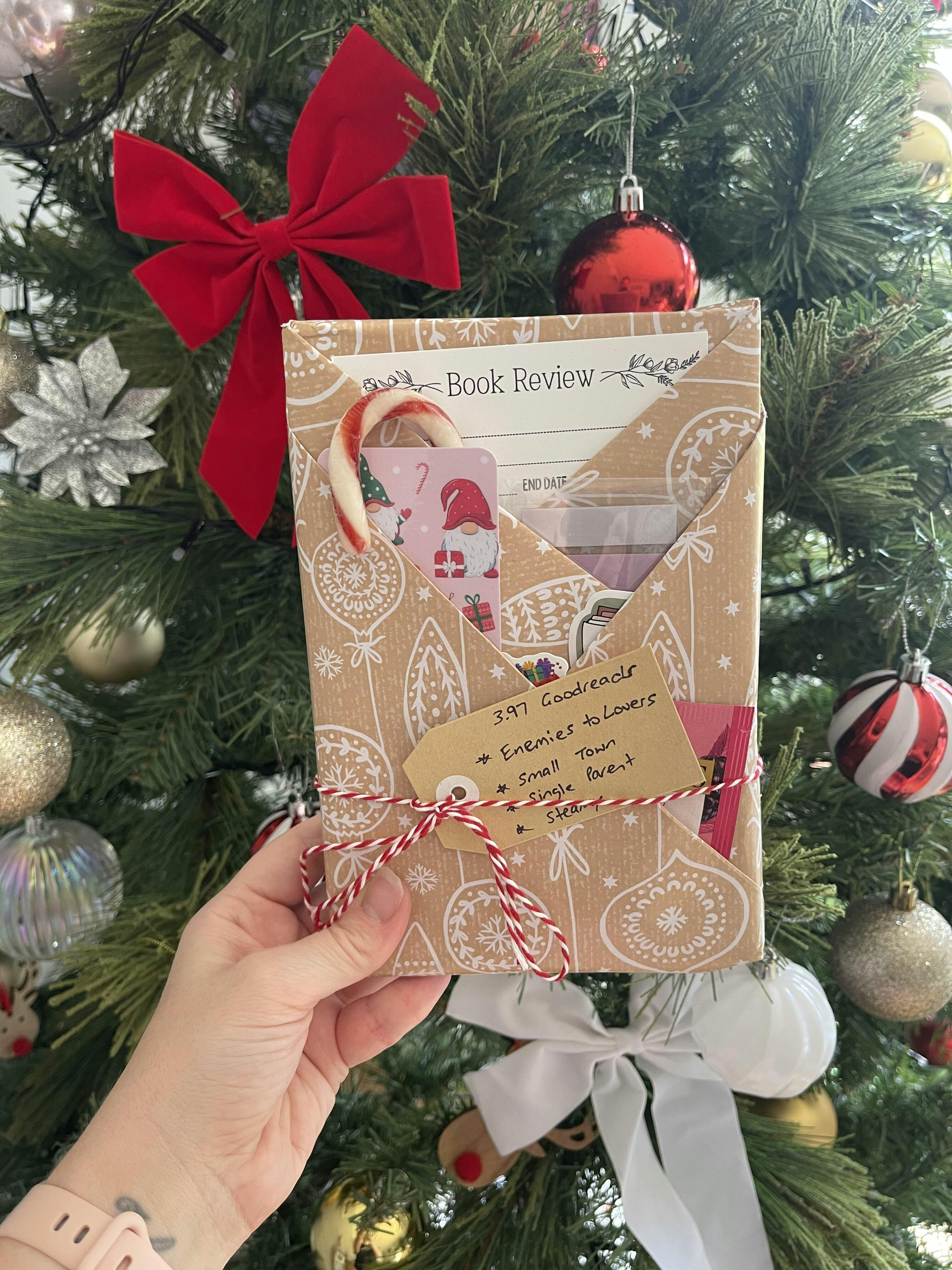 Each book comes with a Christmas themed book review card, tabs, bookmark, stickers, tea, Christmas paperclip and a candy cane!