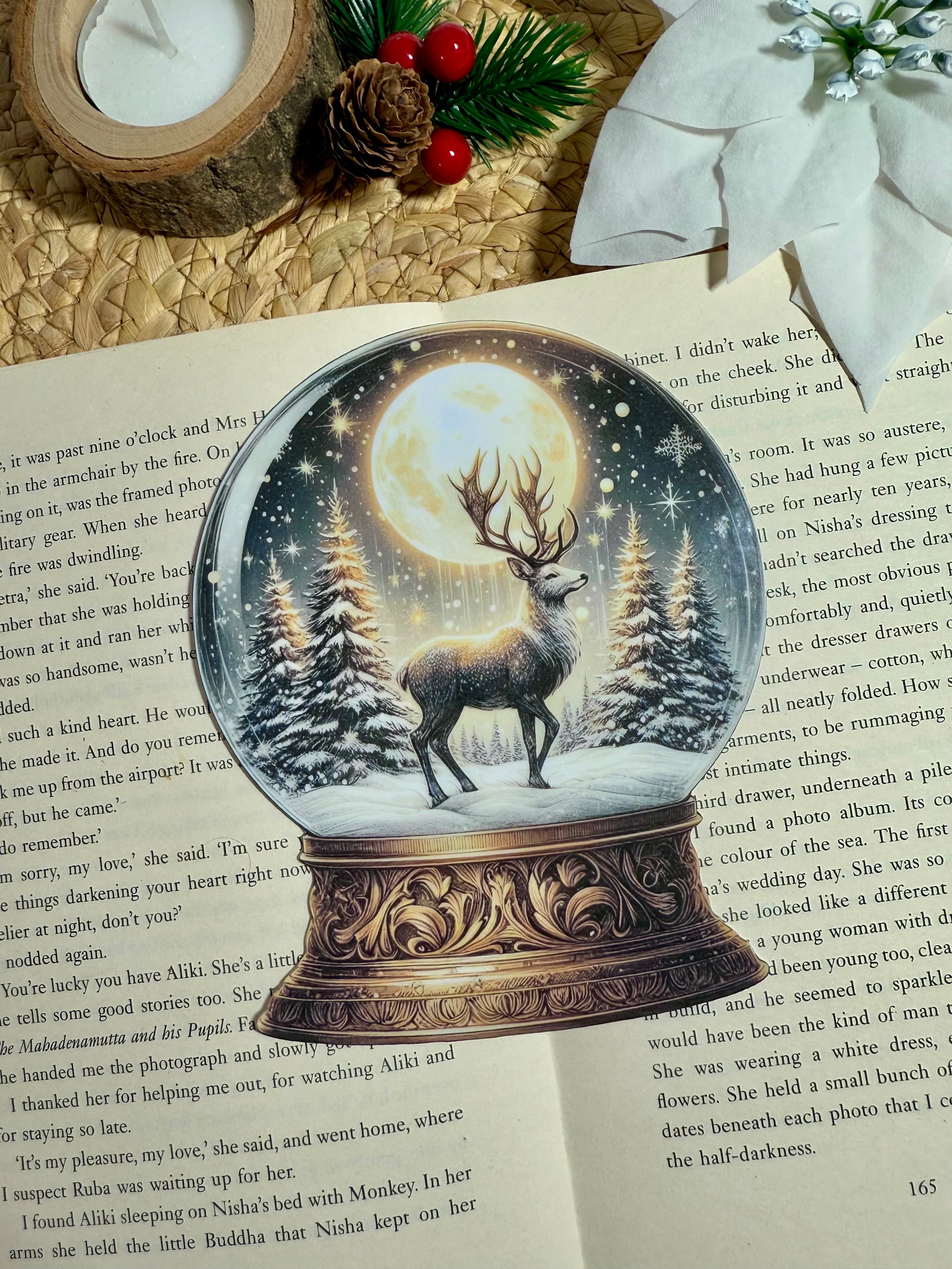 Winter Deer Snow Globe Die-Cut Bookmark