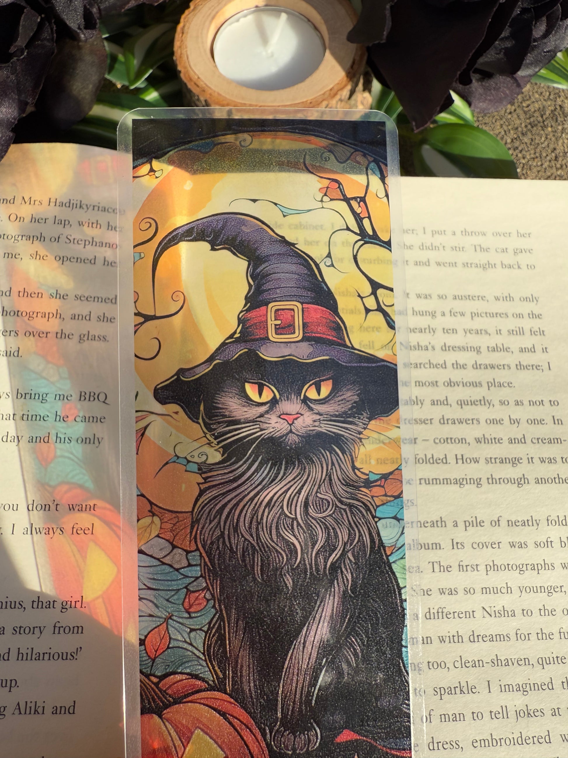 Stained Glass Style Witchy Cat Bookmark