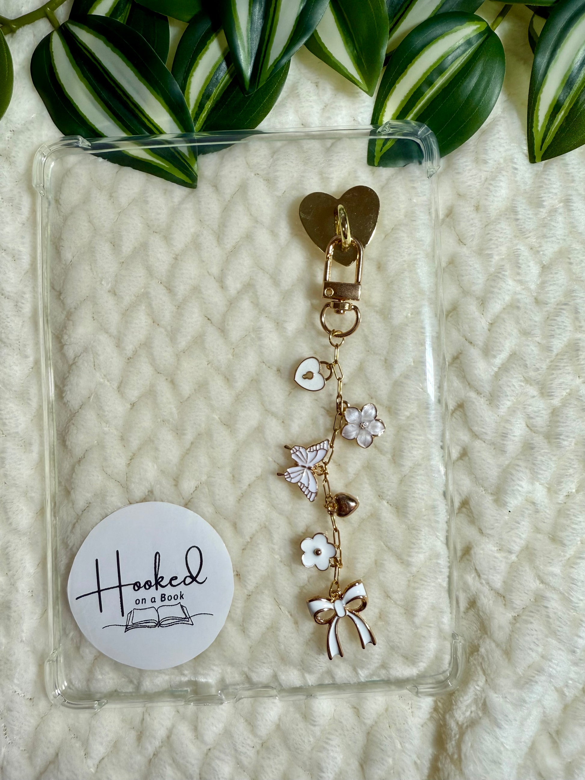 Add a touch of personality to your reading routine with our handcrafted Kindle Charm Chains! Each chain is a mini story of its own. Featuring a curated mix of whimsical charms like florals, cherries, bows, butterflies, cowboy hats, and more. These eye-catching accessories clip effortlessly onto your Kindle or e-reader case, making them the perfect blend of style and function.